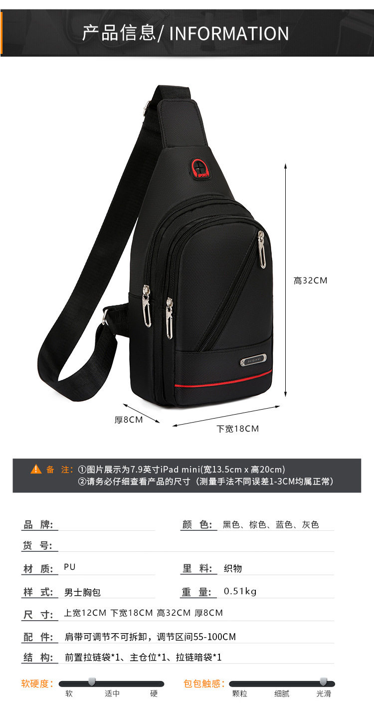 Нагрудная сумка для отдыха, водонепроницаемая износостойкая сумка через плечо с молнией, ткань оксфорд
