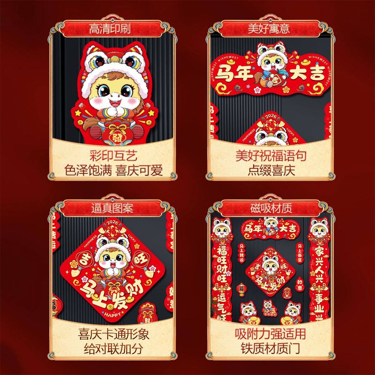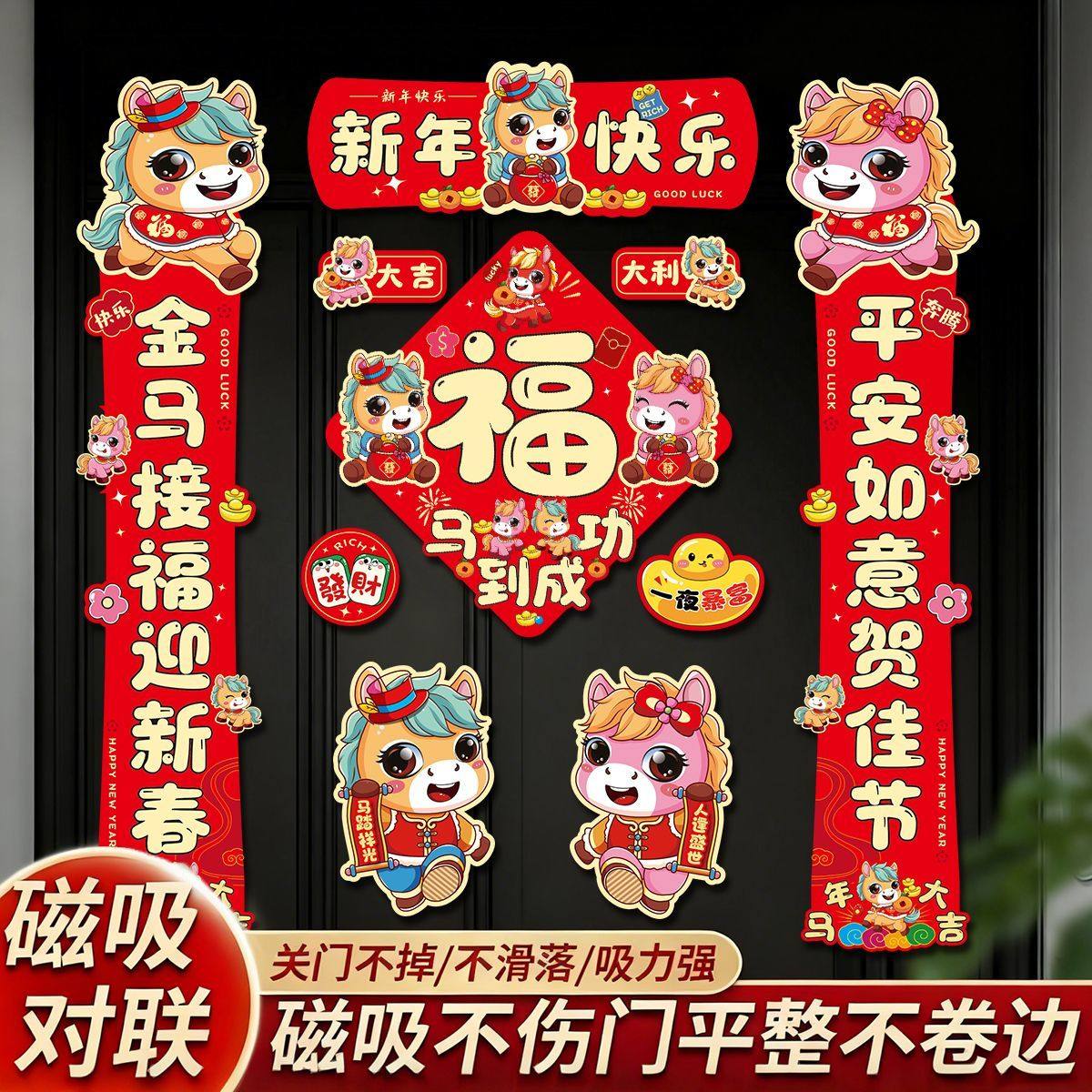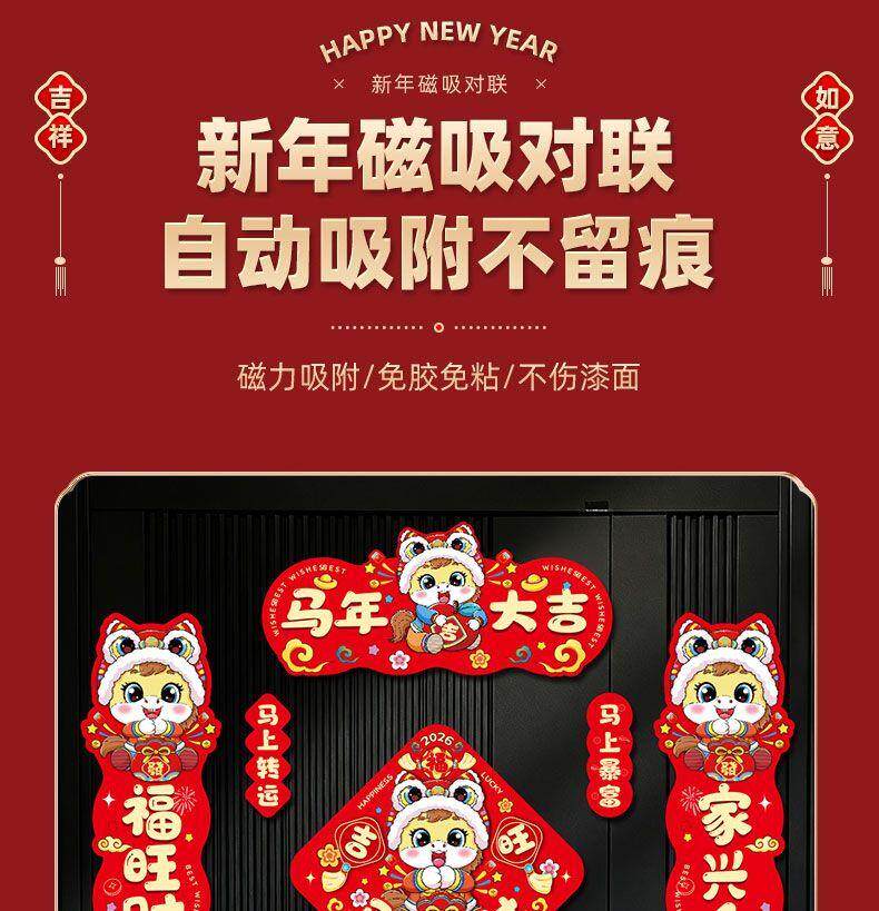 2026 Год Лошади Магнитный Новый Год Весенний Фестиваль Куплеты Главная Железная Дверь Новогодний Макет Фу Персонаж Дверные Наклейки Декоративные Принадлежности