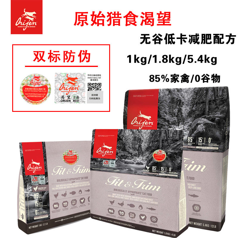 Двойная стандартная анти -Counterfeit Spot Canada Orijen не желает низкого уровня с низким содержанием кошачьей пищи 1 кг/1,8 кг/5,4 кг