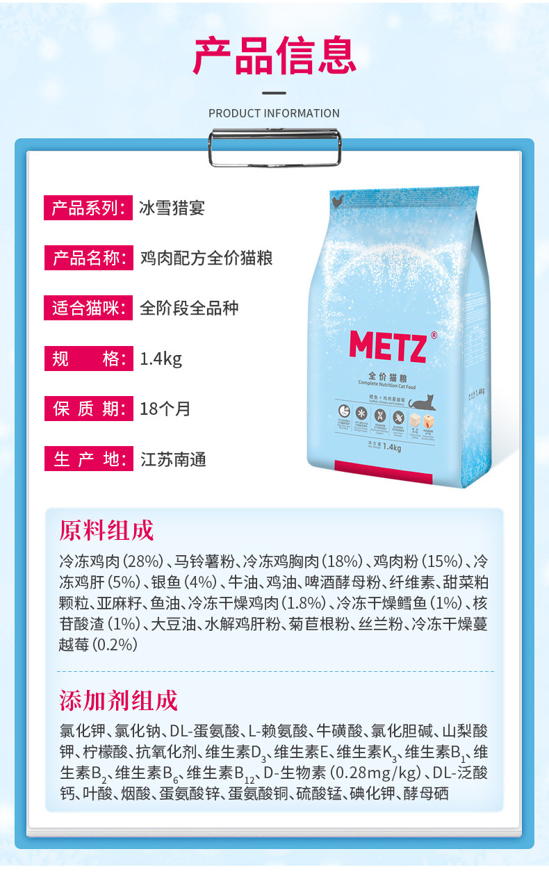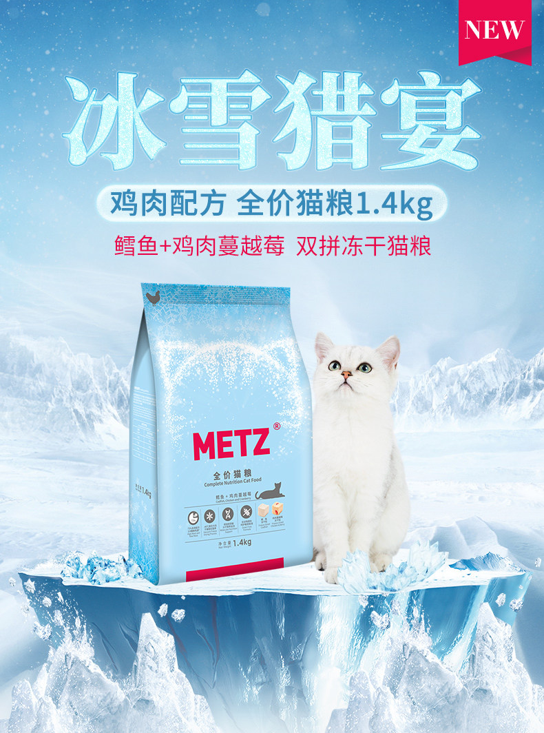 [Новый продукт] METZ/Mese Ice and Snow Hunting Feast с курицей и клюквой, полная цена, двойной сублимированный корм для кошек, 1,4 кг Metz