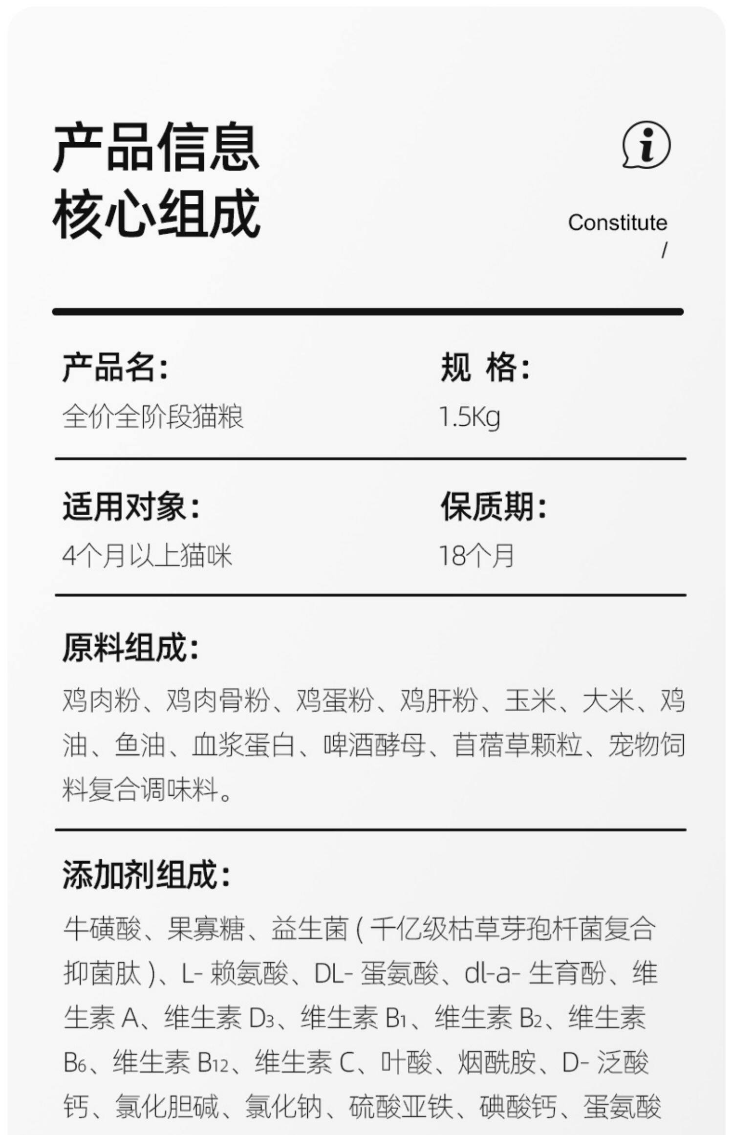 | Еда: | [Ченг кошачья еда] Однозначное соотношение питания золота с одним мясом, [Улучшение кошек и кошек] Поддержание сердечного анти -высокого белка |