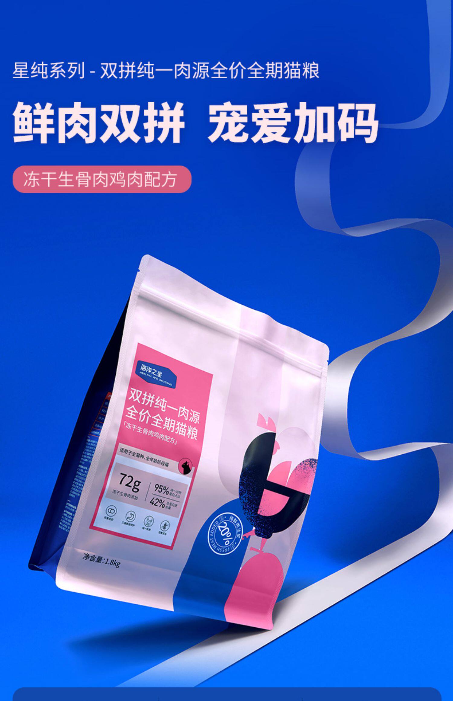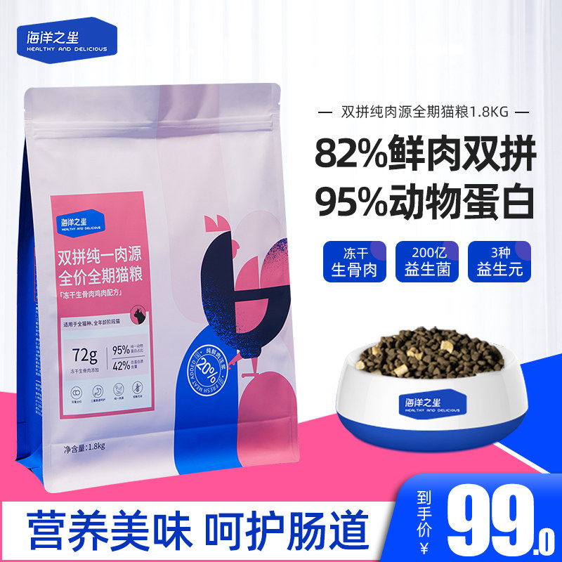 Звезда Ocean Shuangpin Pure Cat замороженная замороженная замороженная и костяная кость в котенок кошачья корма британская короткая корма кошка 1,8 кг