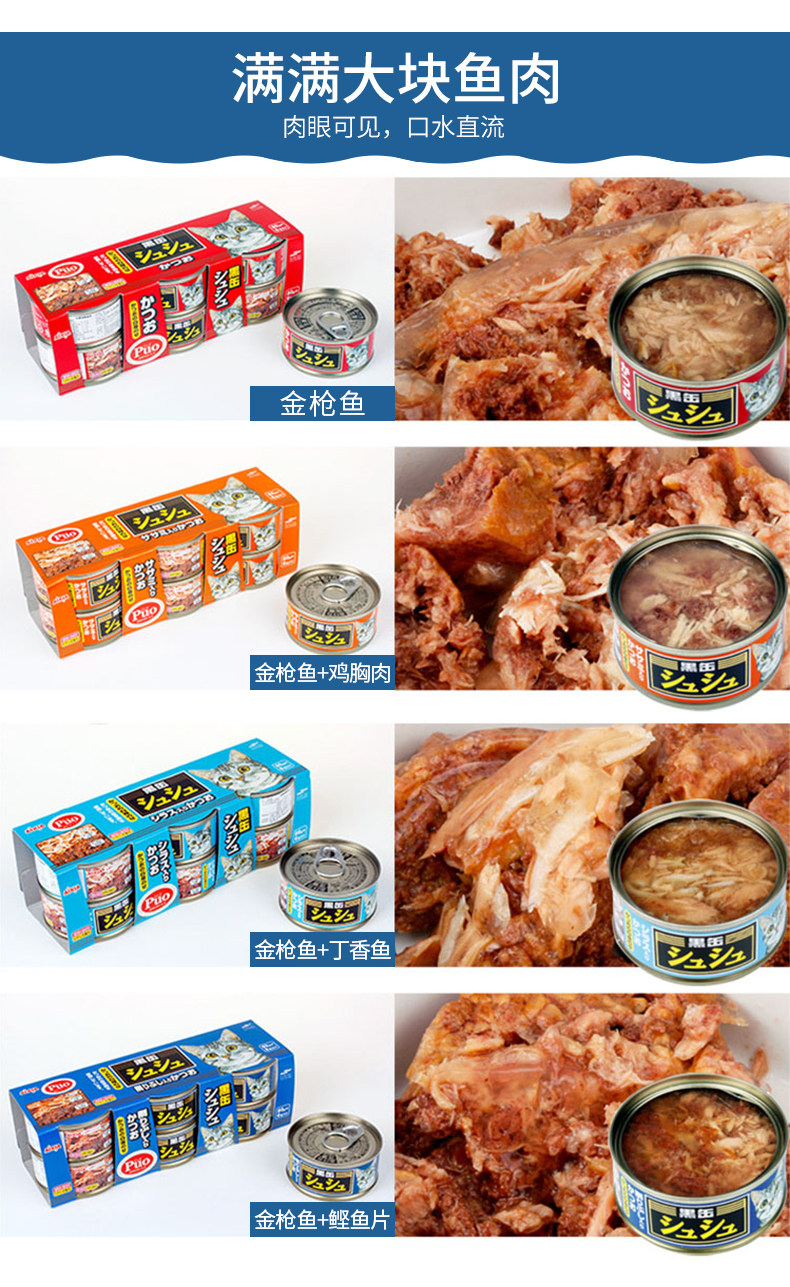 | Еда: | Смешанный вкус, Тунец, Тунец+гвоздика, Золотой тунец+Сом, Золотой тунец+куриная грудка |