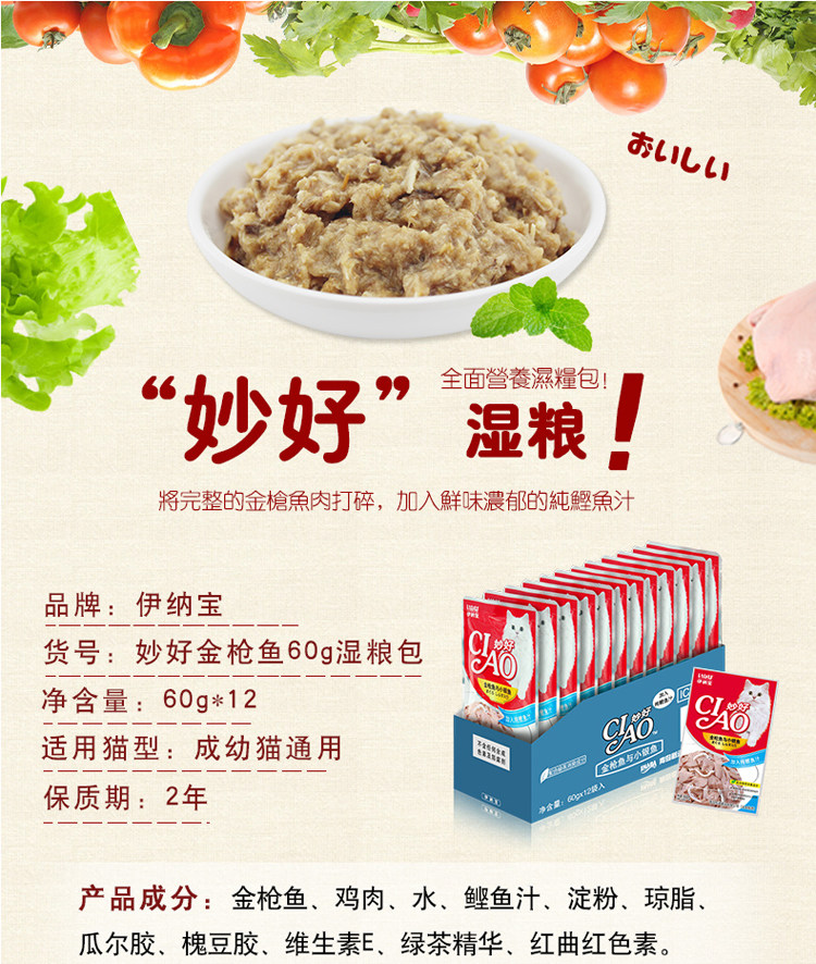 | Еда: | Золотой тунец+серебряная рыба, Золотой тунец+колонна гребешка, Тунец, Золотой тунец+крабовое мясо, Лосось, Золотой тунец+курица, [Значение 12 упаковки] Золотой тунец+серебряная рыба, [Значение 12 упаковки] Золотой тунец+Столп морского гребешка, [Значение 12 упаковок] Золотой тунец, [Значение 12 упаковки] Золотой тунец+крабовое мясо, 【Значение 12 упаковка】 лосось, [Значение 12 пакетов] Смешанный вкус, [Значение 12 упаковок] Золотой тунец+курица |