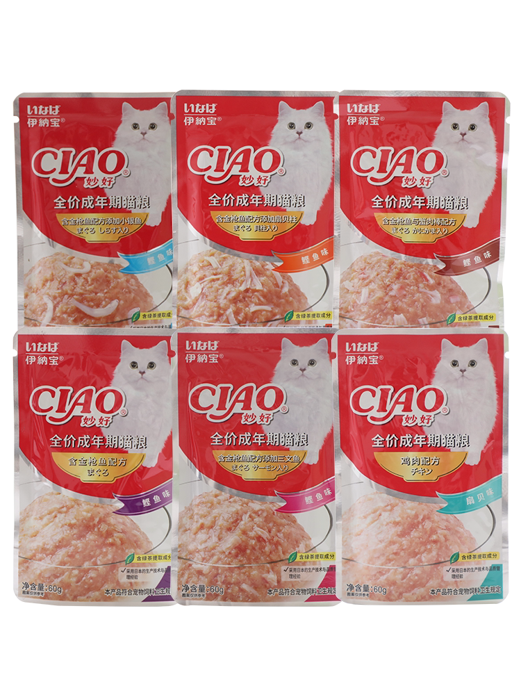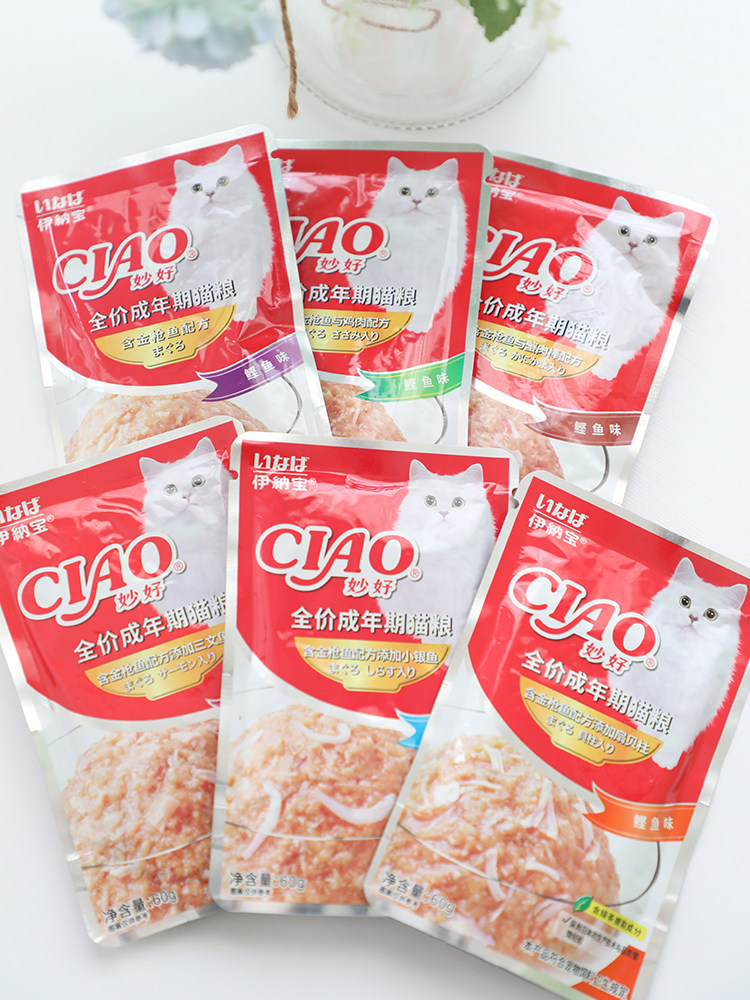Кошачья закуска ina bao miao влажный мешок с влажным зерном 60 г*12 кошачий влажный зерно золотой тунец закусок кошки кошка