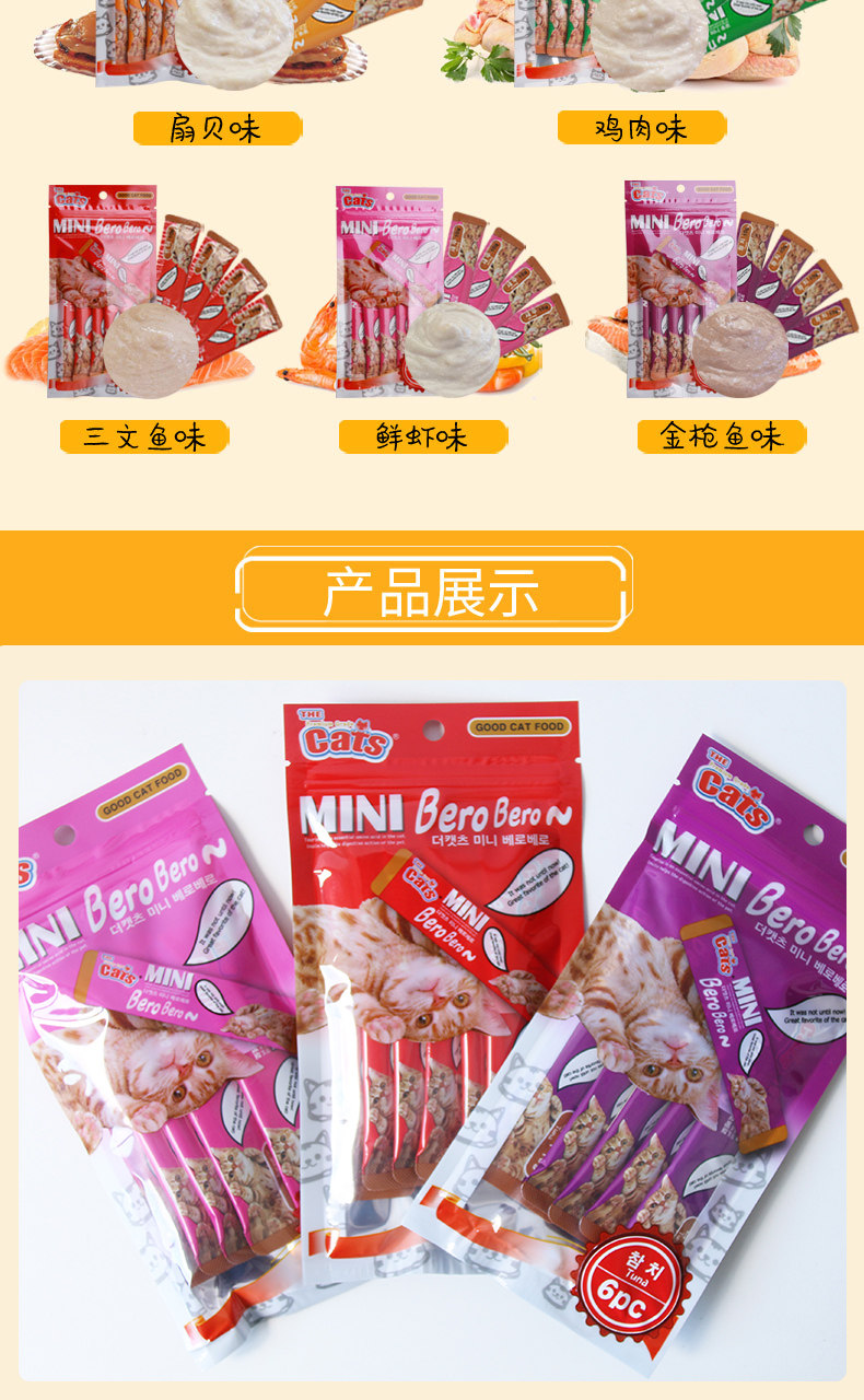 | Еда: | Свежий вкус креветок [5 упаковка], Вкус золотого тунца [5 упаковка], Вкус лосося [5 упаковка], Куриный вкус [5 упаковка], Вкус гребешки [5 упаковка], Смешанный вкус [5 упаковка] |