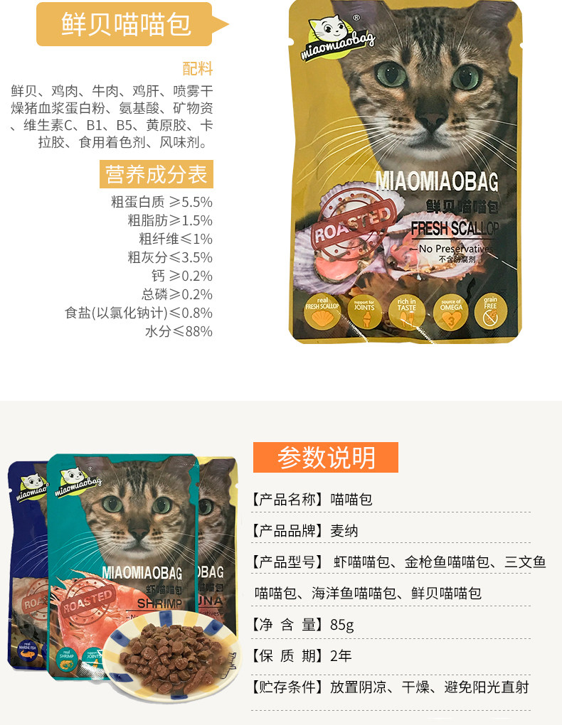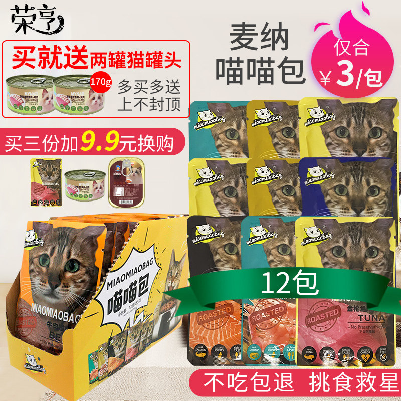 Mana Meow Bag Miao Fresh Cat Bag Сумка для мокрого зерна кухня кошачья закуски установлена Can Meaw Fish Bibimbap 85G*12