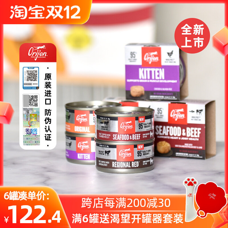 Новый продукт Orijen желает консервированных кошек в кошек и кошек.