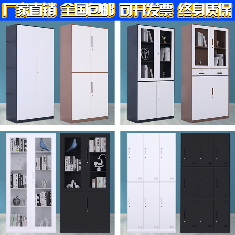 Железный шкаф в офисном цвете Черно -белый стальный стеклянный стеклянный стеклянный стеклянный стеклянный