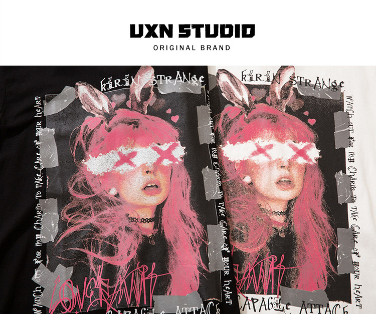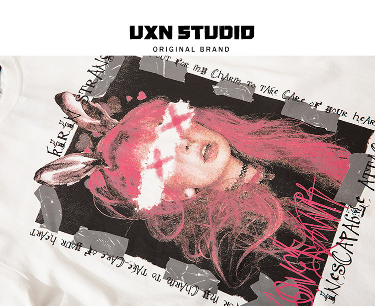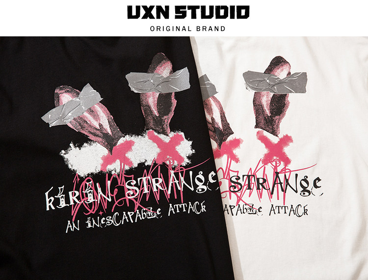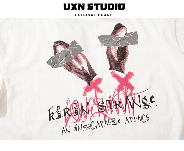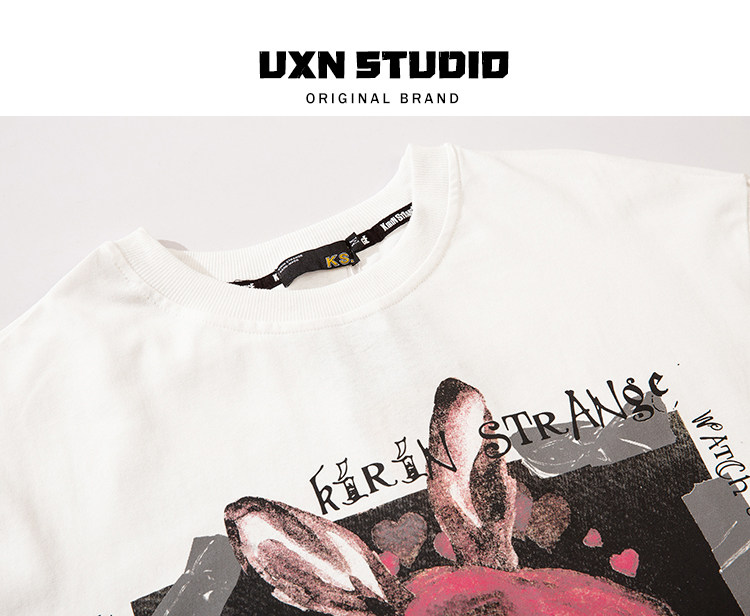 UxnStudio Original Tide Brand Street Trend Trend Two -Dimensional Retro Short Pomelo T