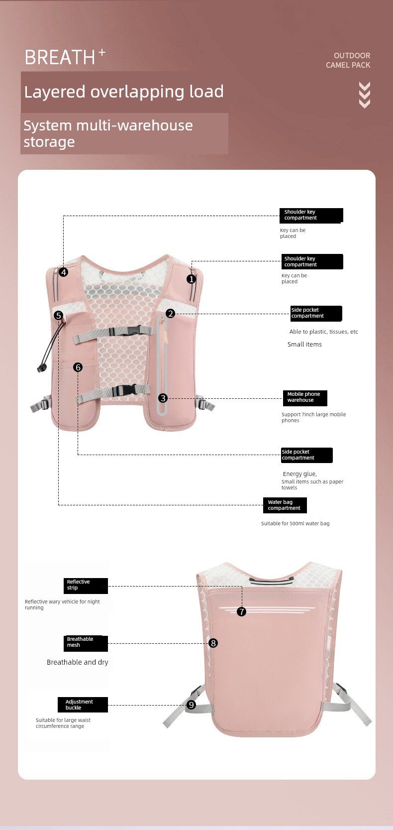 Летний универсальный рюкзак, велосипед подходит для пеших прогулок, внедорожный жилет, для бега