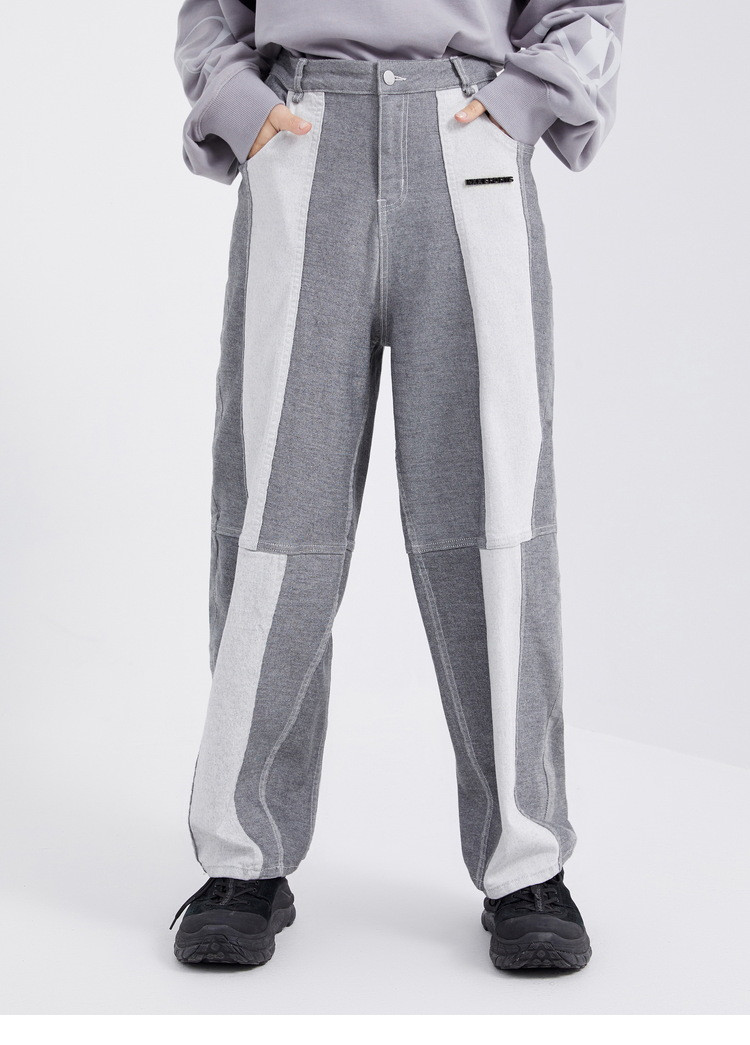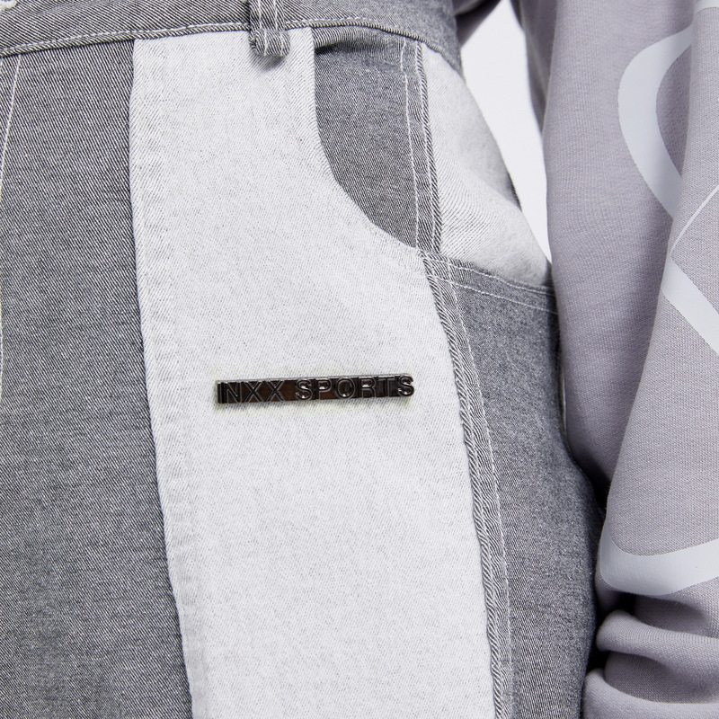 Sports Inslokes Inxx, контрастные цветовые брюки много -карманные свободные джинсы