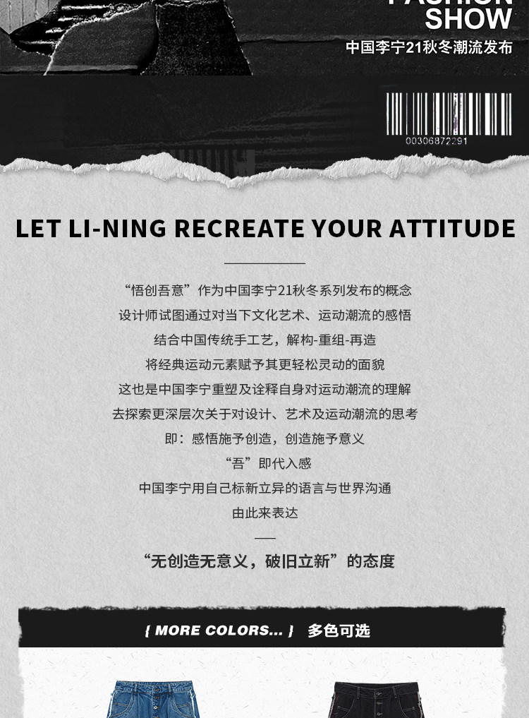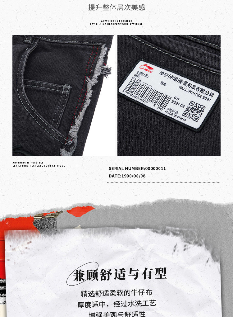 Li Ning, штаны для отдыха, модные джинсы, свободный прямой крой