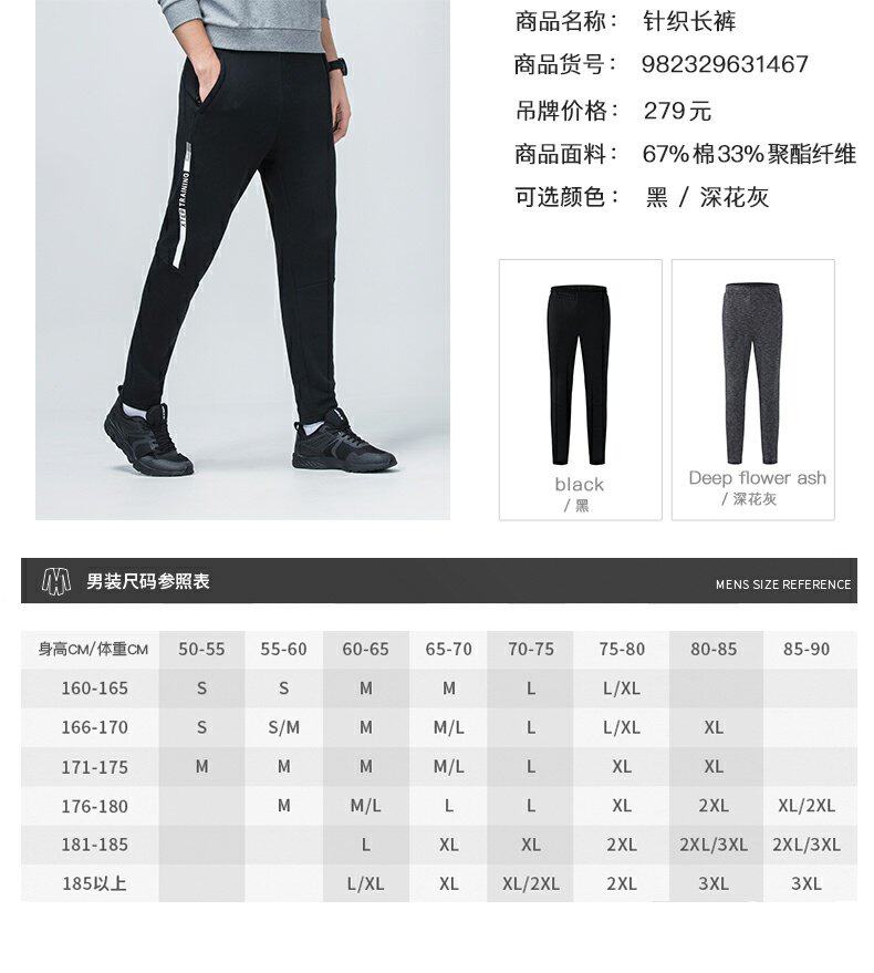 Xtep, осенние трикотажные штаны для спортзала, свободный прямой крой