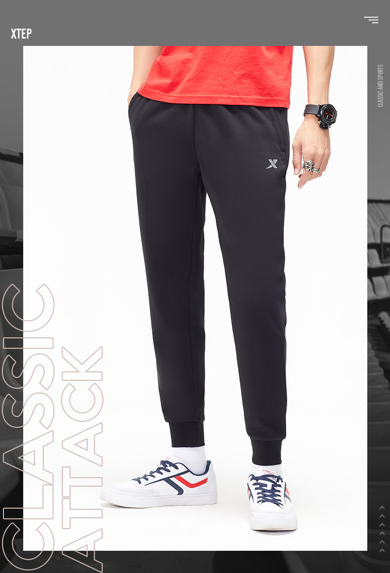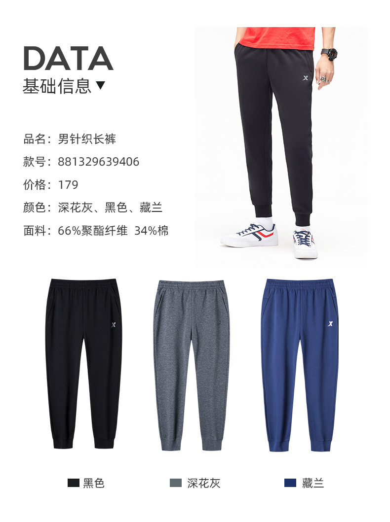 Xtep, осенние трикотажные штаны с молнией