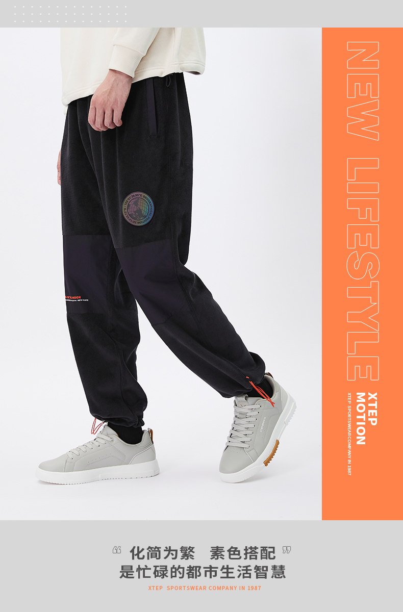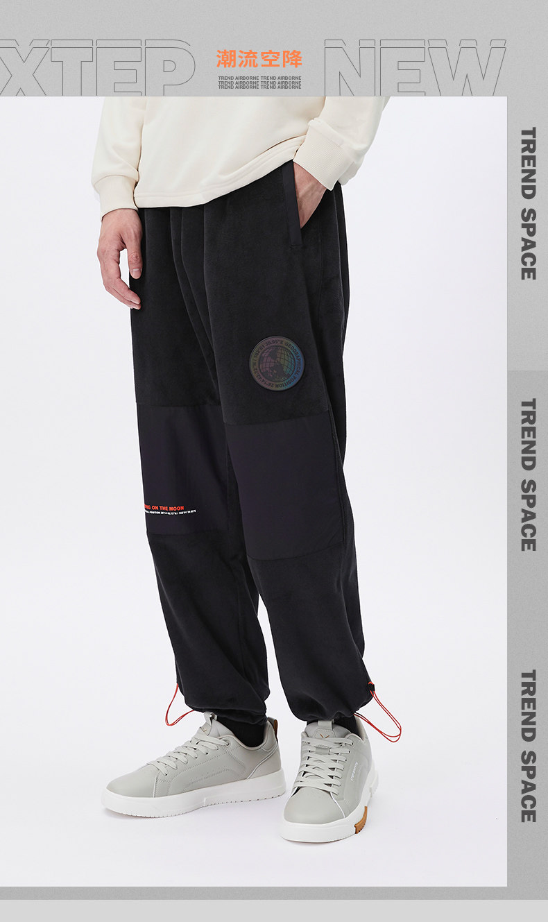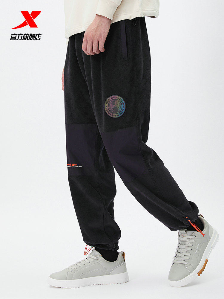 Xtep, демисезонные двусторонние бархатные спортивные штаны, 2020, свободный прямой крой