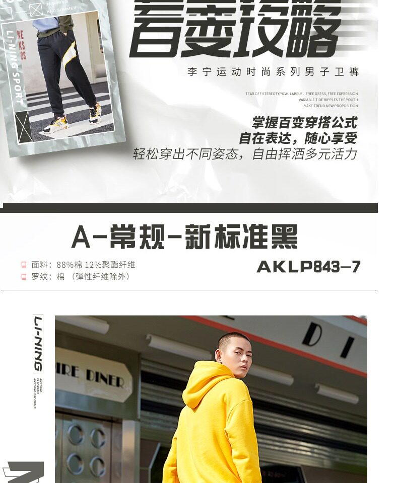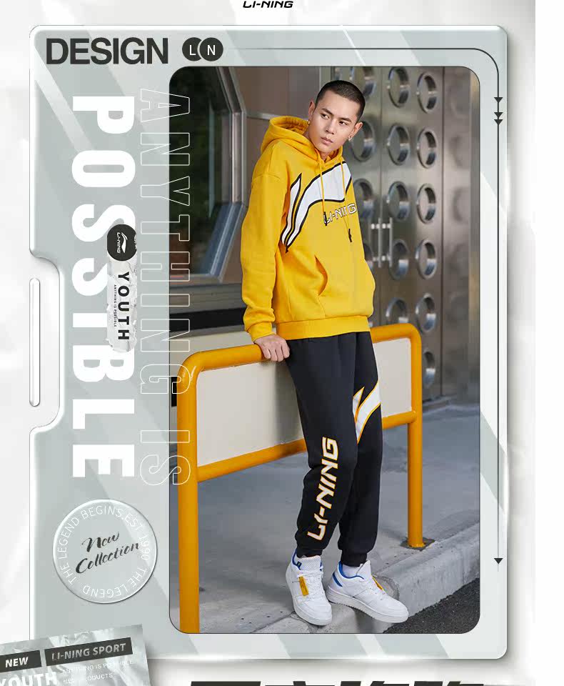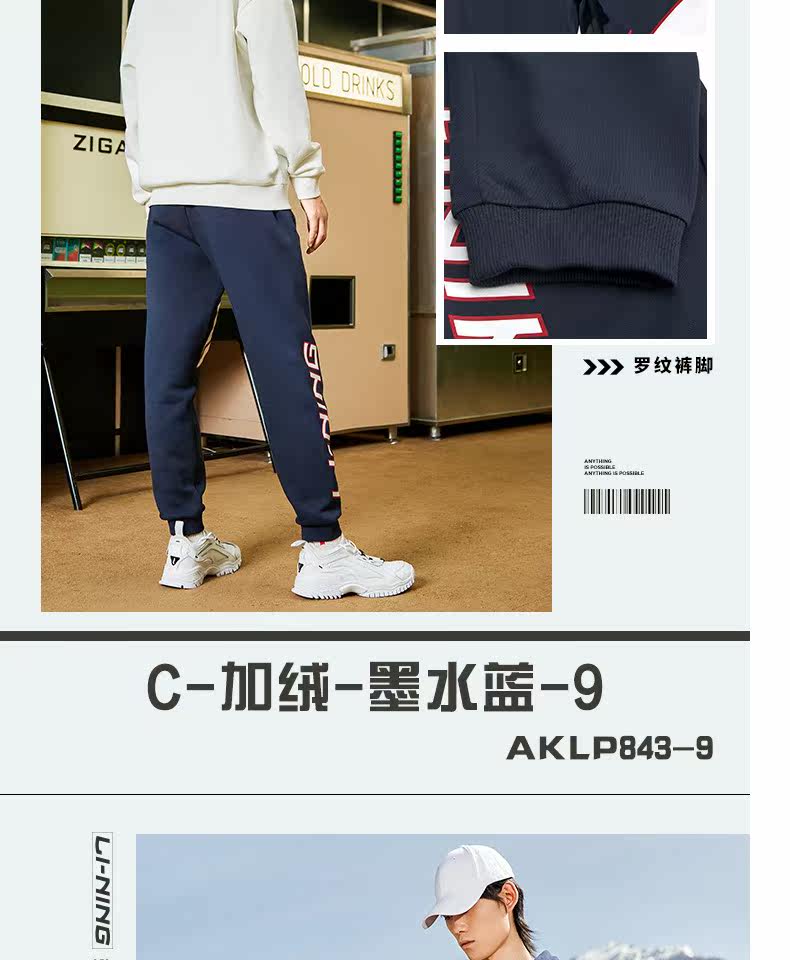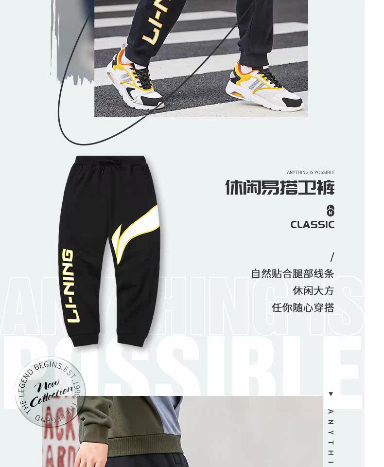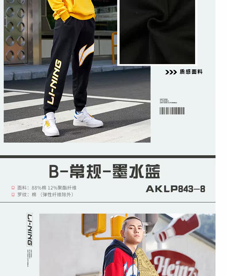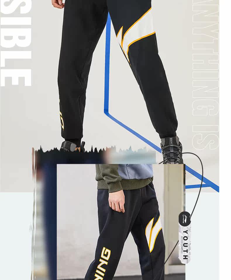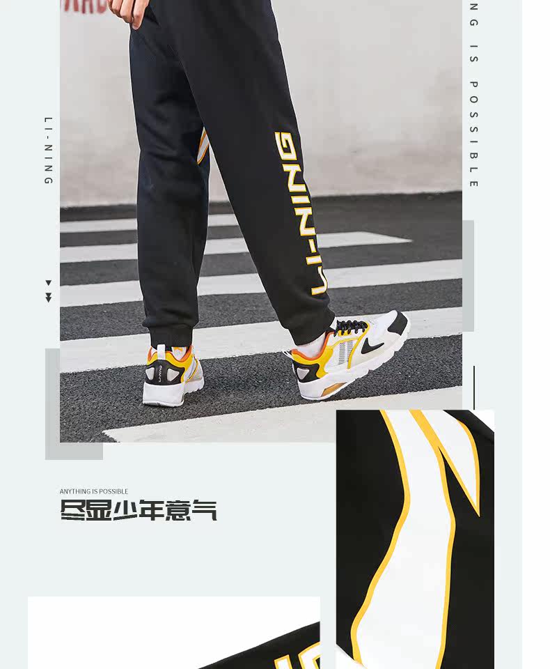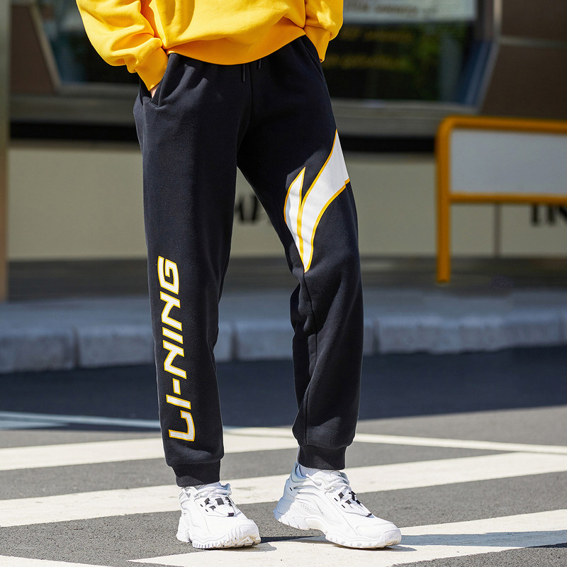 Li Ning, мужские осенние трикотажные дышащие спортивные штаны, с печатью вашего логотипа, оверсайз