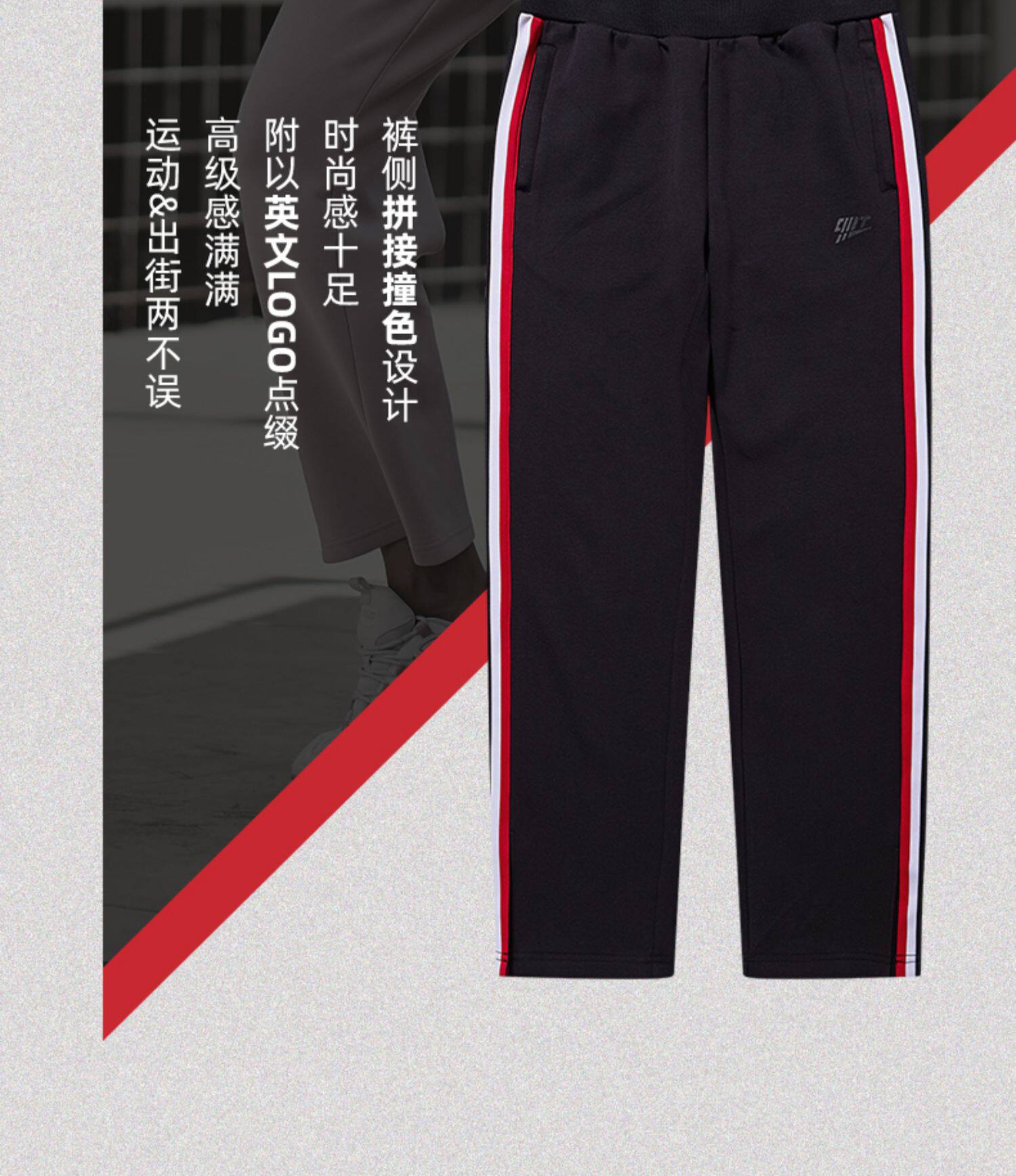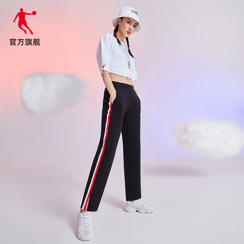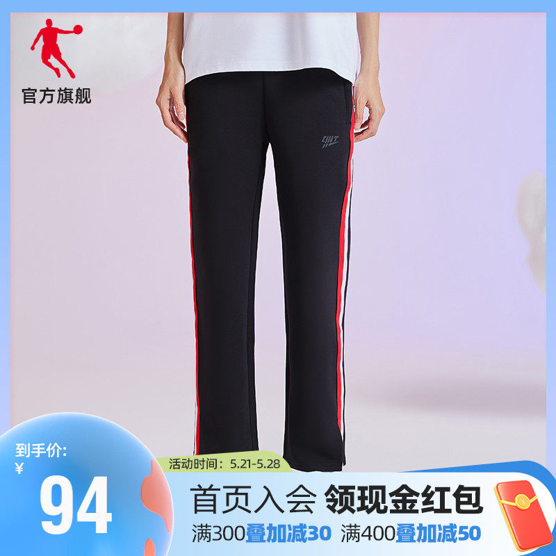 乔丹 Осенние черные трикотажные штаны, свободный прямой крой