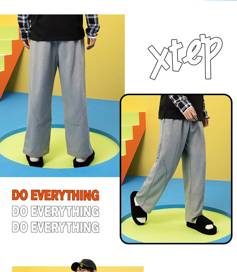 Xtep, осенние трикотажные штаны, свободный прямой крой