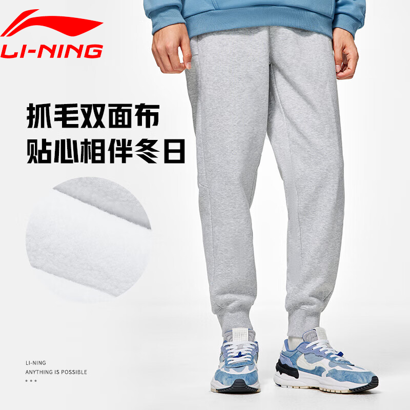 Li Ning, весенние осенние флисовые удерживающие тепло штаны, свободный крой
