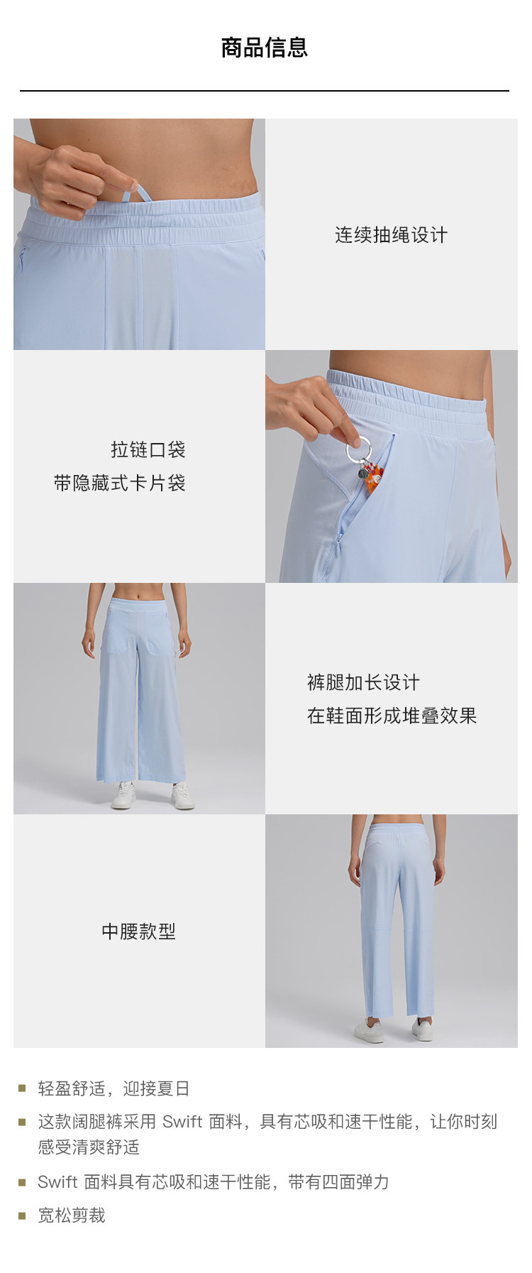 Свифт широко нога женских брюк с широкопроизводительными брюками быстро сухие