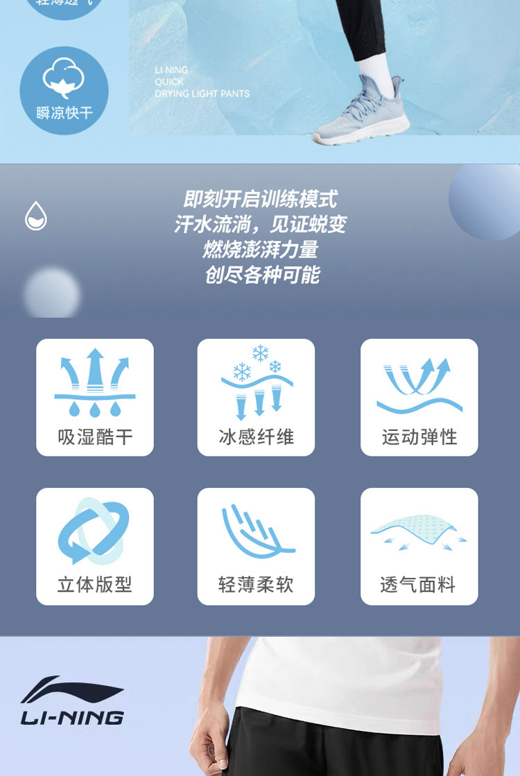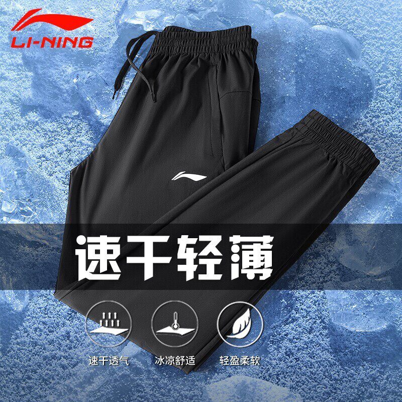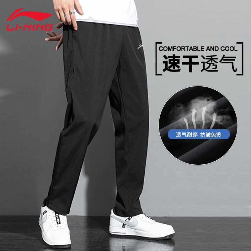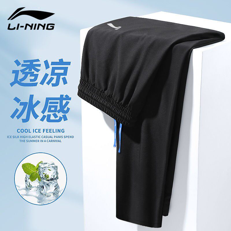 Li Ning, быстросохнущие шелковые летние тонкие штаны, свободный прямой крой