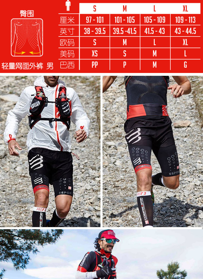 Compressport Sports Blont Shorts Мужские соревнования легкие сетки Внешние брюки Марафонские штаны Фитнес Женщины