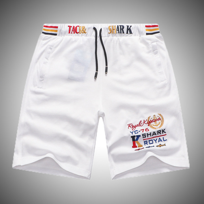 Летние спортивные шорты, акула, эластичные пляжные штаны, 2023, с вышивкой