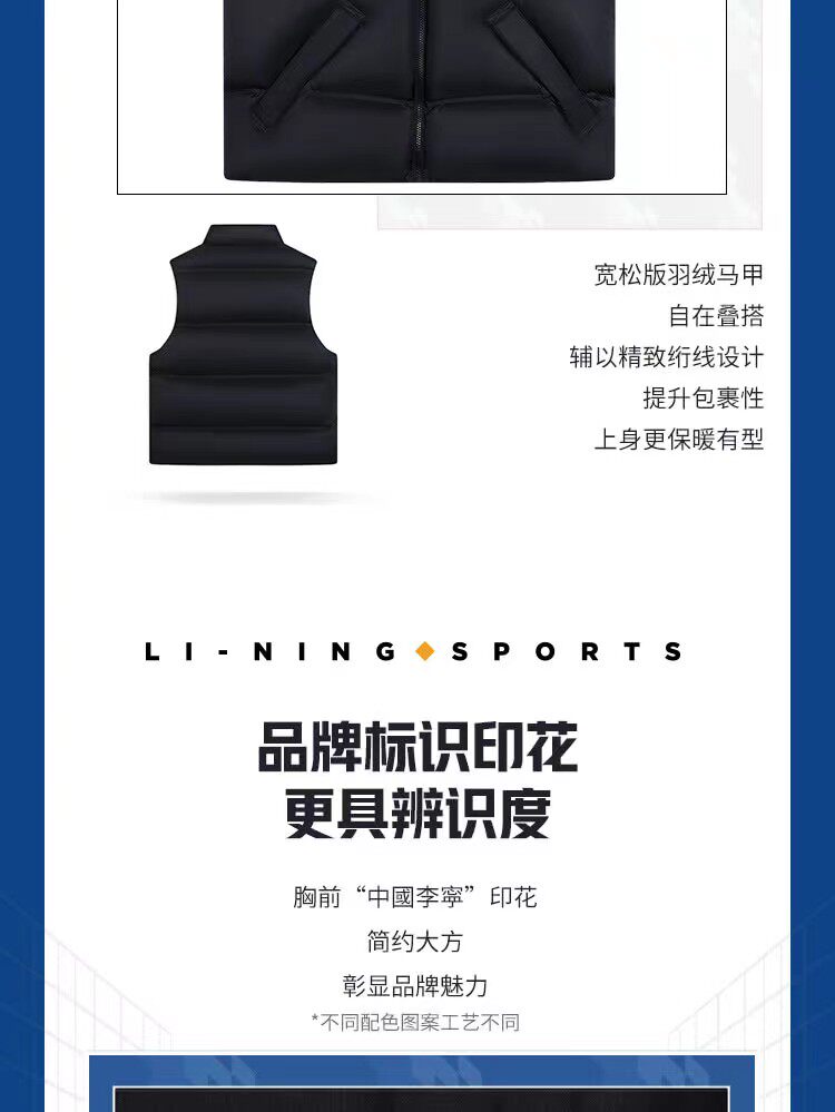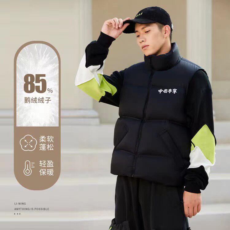 Li Ning, демисезонный спортивный бархатный удерживающий тепло жилет подходит для мужчин и женщин с пухом, свободный крой, гусиный пух, набивка пером