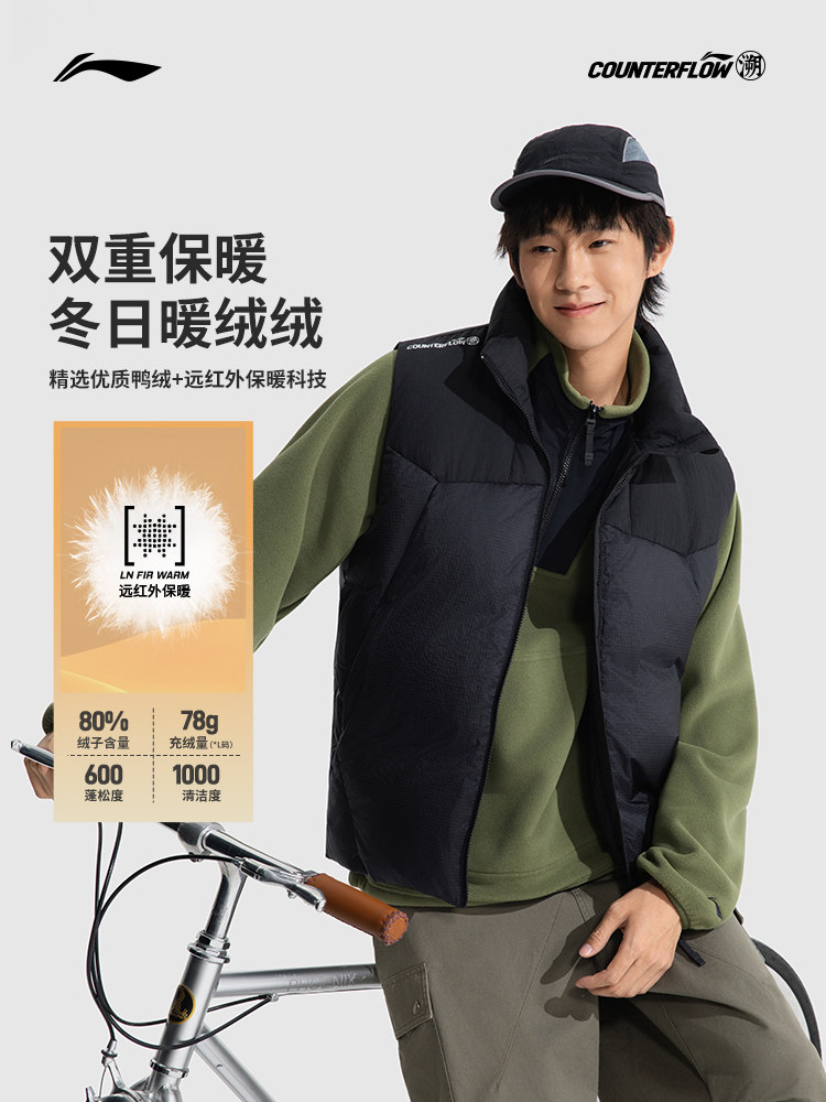 Li Ning, жилет с пухом подходит для мужчин и женщин, демисезонное термобелье для влюбленных, утепленный спортивный костюм, оверсайз, утиный пух