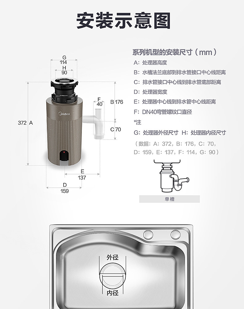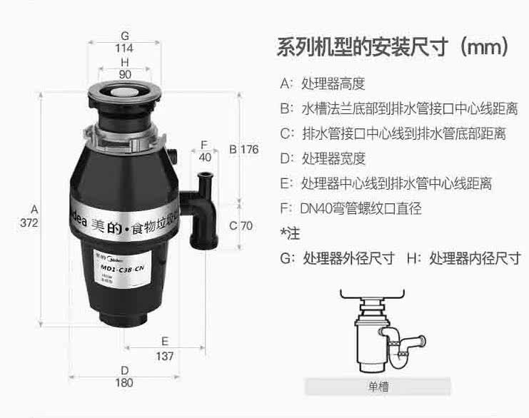 Midea/Midea's C38B Кухонный процессор отходов Home Kitchen отходы пищевая дробилка без