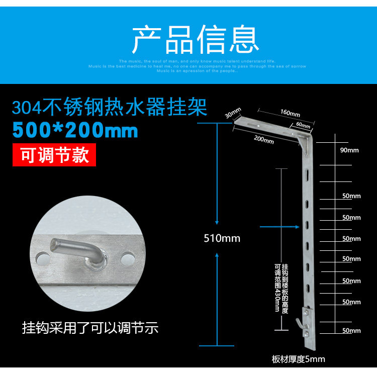 304 Электрический водонагреватель из нержавеющей стали Стена GM Стена крючка Smedie L -обработка потолочных стоек аксессуаров