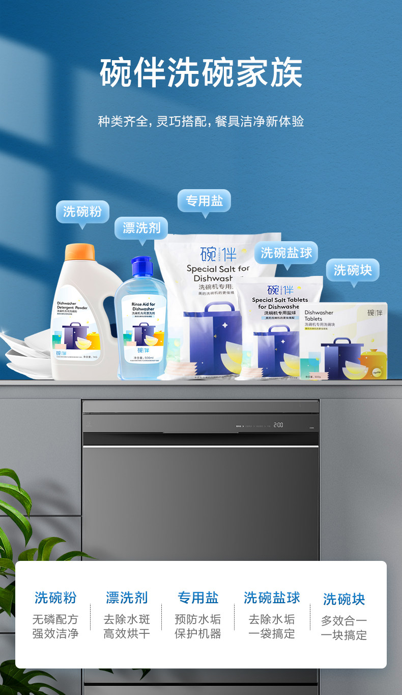 Мидиал с посудомоечной машиной.Вымойте миску 30 кусочков+соль мягкой воды 500G