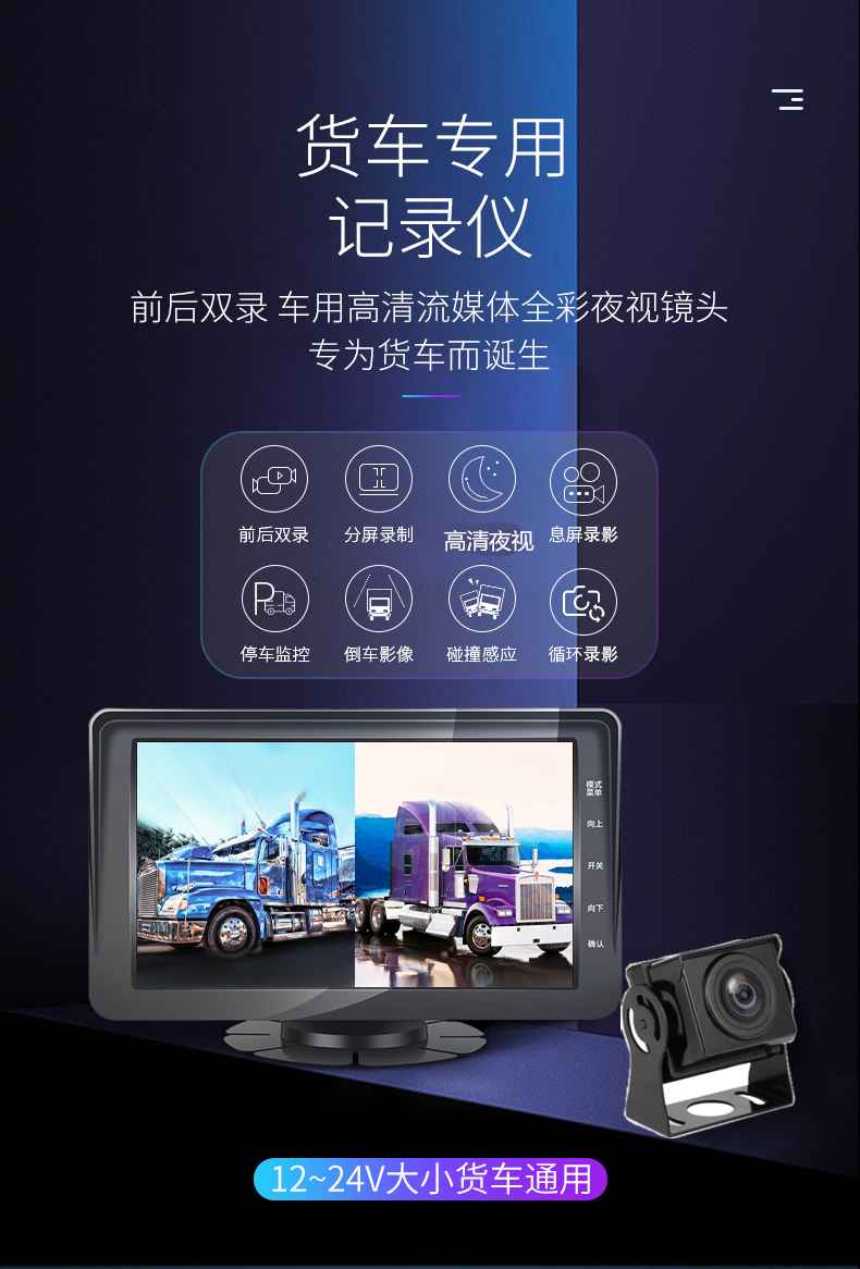 Вождение в рекордере крупных и небольших грузовиков HD Visual Dual -lens до и после двойного переработка изображения All -In -One 12V24V
