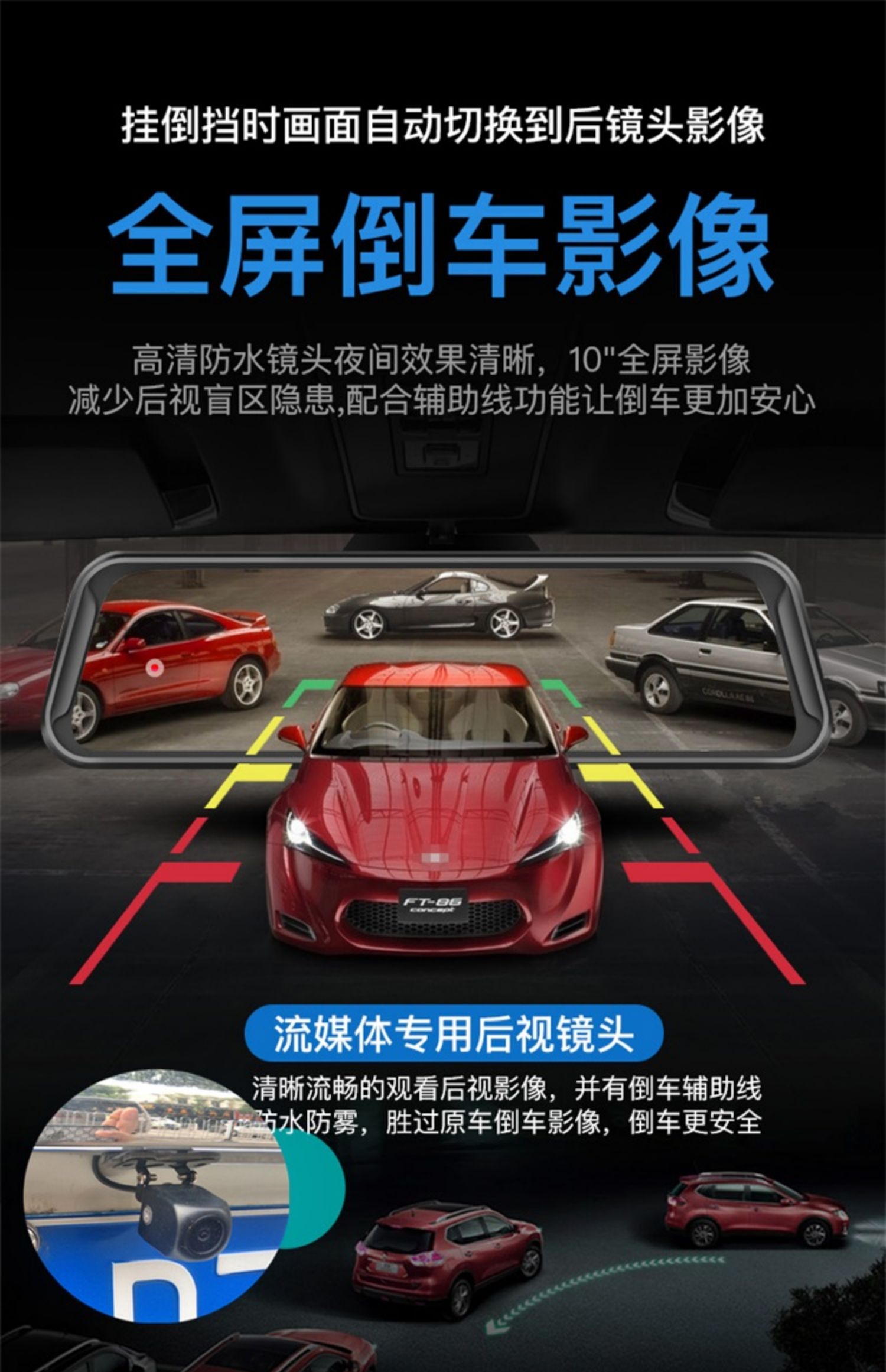 Двойная и вперед, левая и правая слепые пятна водителя, линза, объектив, мониторинг парковки с изображением средней сети Полно -экраны