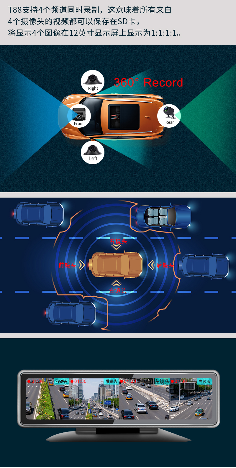 Новая центральная консоль тип 360 четырехэтажный панорамный мониторинг потоковой потоковой потоковой потоковой передачи ночного видения Реверсирование изображений Навигация по вождению навигация