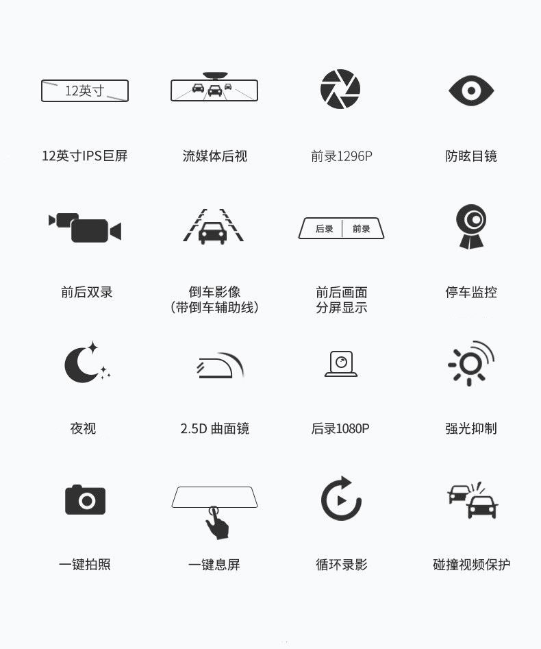 Позвольте мне плавать 12 -вдрудочный рекордер 4K потоковой медиа -задний сердечный зеркал панорамный дистанционный мониторинг