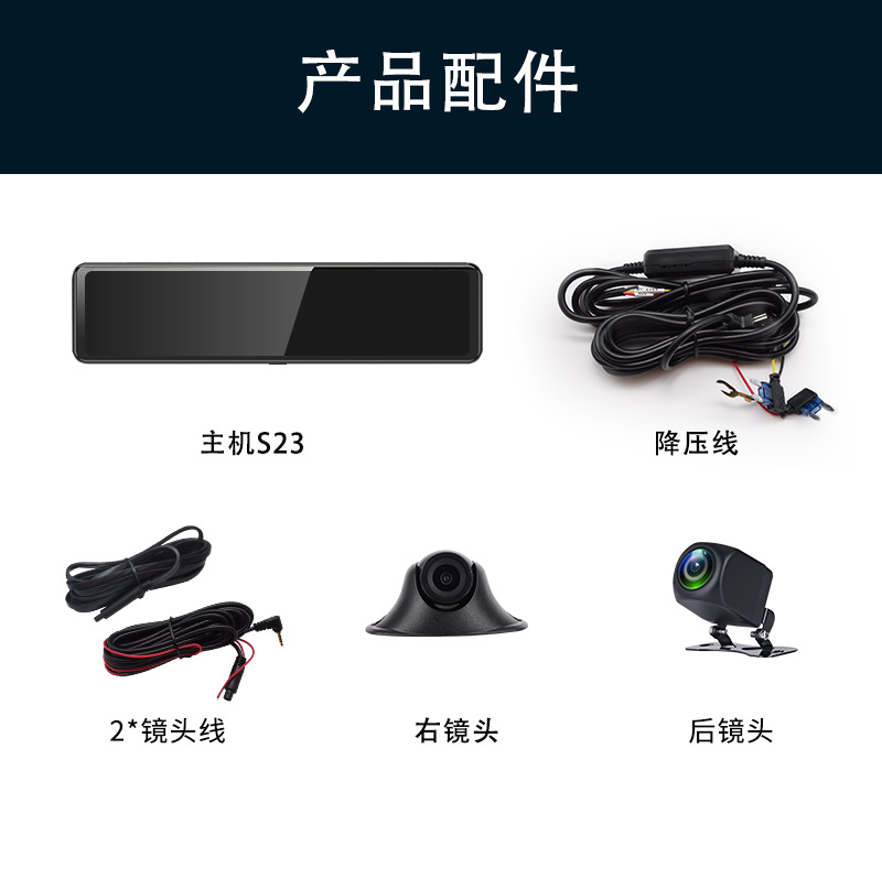 Объектив, зеркало заднего вида, регистратор, вспомогательная парковочная стойка, монитор
