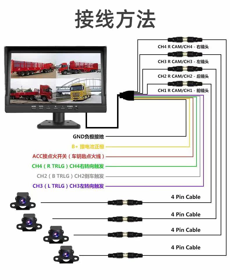 Рекордер Vancanus обратный изображение 360 ° панорамное четырехэтажное мониторинг HD 24V Night Vision Special All -In -One