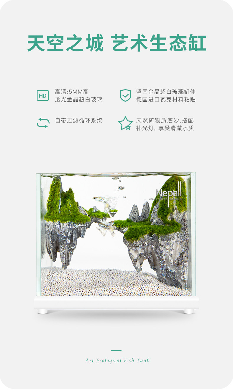 Nepall Подарок Sky City Small Fish Tank Маленький настольный мини -мини -вариант