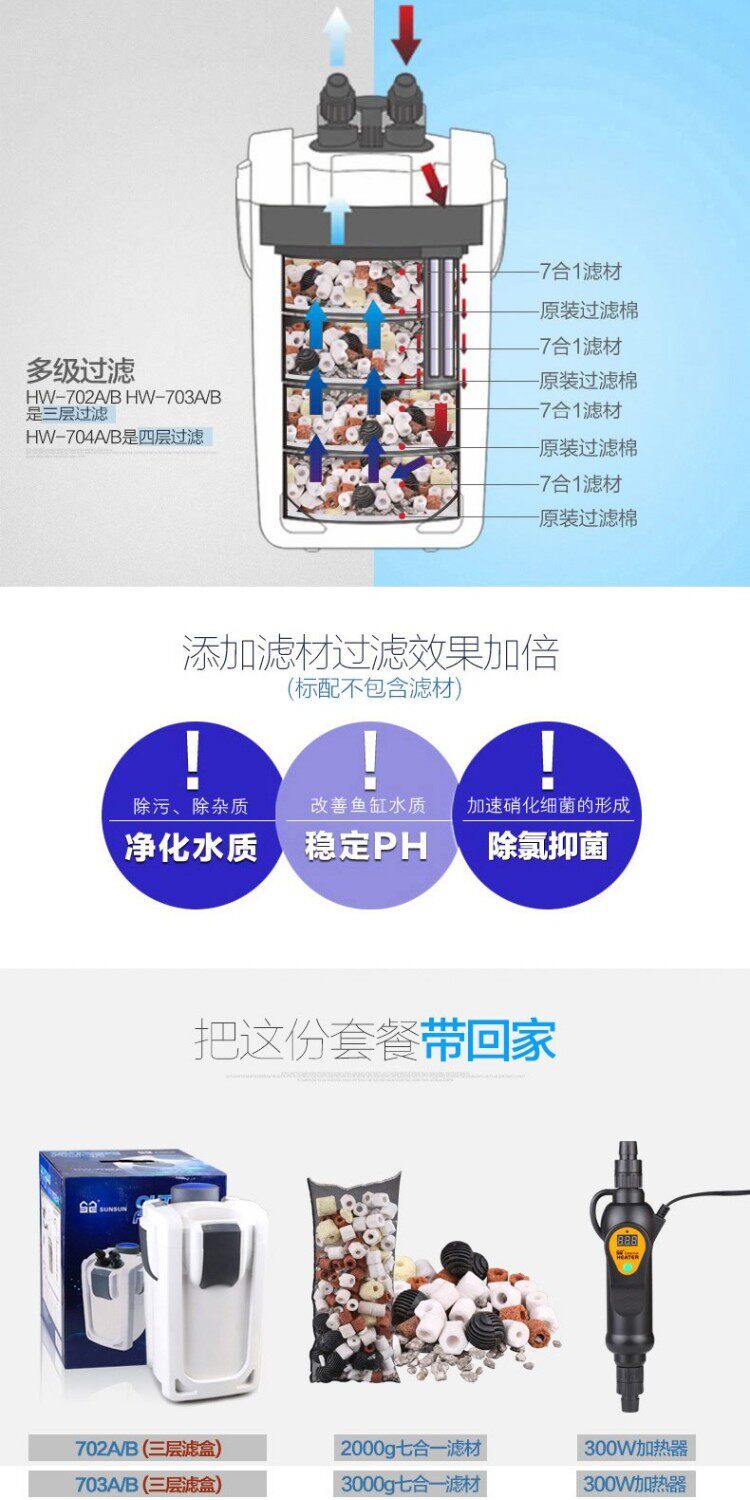 Sensen Cylnder Filter Fish Tank Filter Bucket Bucket Aquarium Внешний безмолвный рок фильтр HW-704B