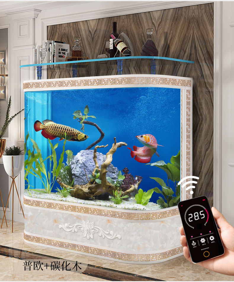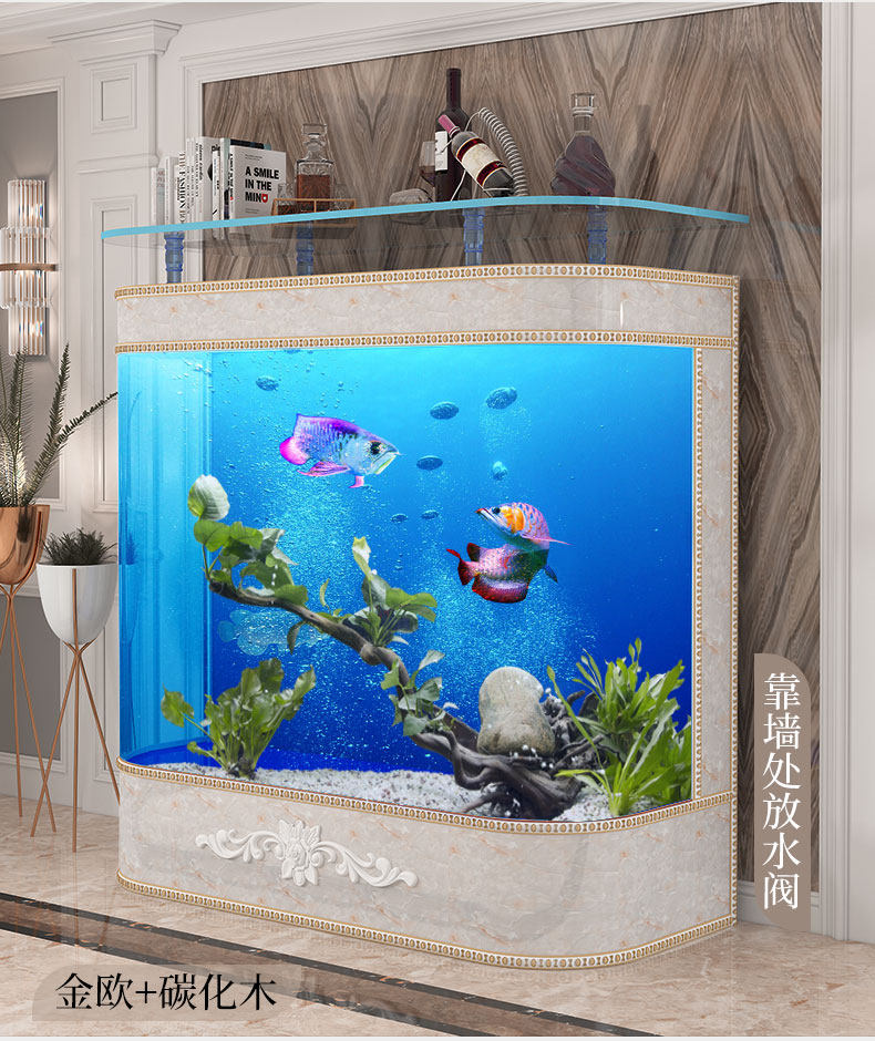江彩 Рыба -танк гостиная домашняя посадка ультра -белый стекло освобожденную воду, круглый круглый крупный европейский стиль золота настройка