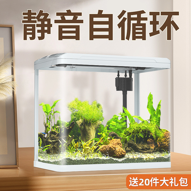 Yee Small Fish Tank High -Definition стеклянный аквариум небольшая гостиная на рабочем столе на рабочем столе ленивая замененная вода, экологический фильтр, золотой аквариум рыб