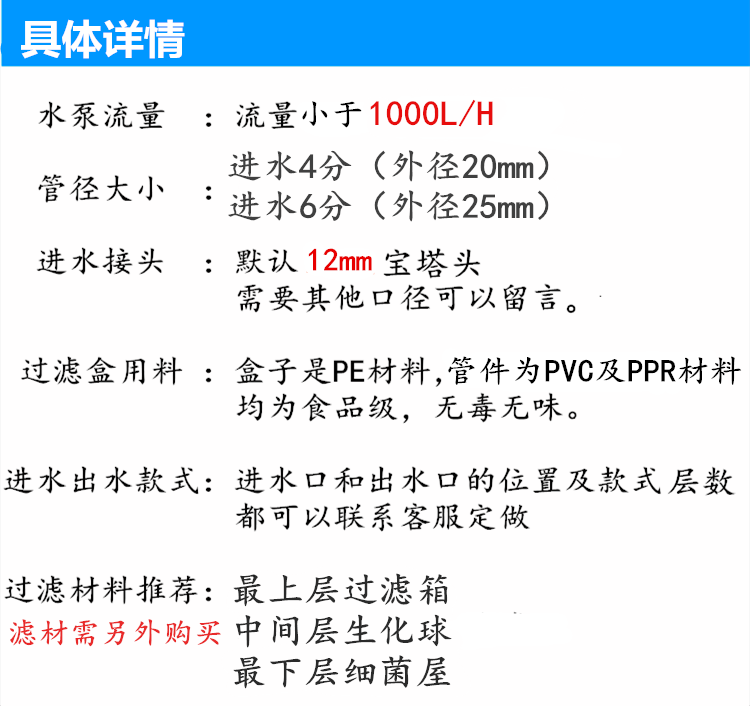 | Цвет: | Получите крышку на двух слоях синей коробки, Синяя коробка три слоя, чтобы отправить крышку, Получите крышку на четырех слоях синей коробки, Отправить крышку на два слоя белых коробок, Отправить крышку на третьем этаже белой коробки, Отправить крышку на четыре слоя белых коробок, Два -слойный полный комплект фильтрованных материалов без коробок и насосов, Три -слойный полный набор фильтрованных материалов без коробок и насосов, Четырехслойный полный набор фильтрованных материалов без коробок и насосов, Средний слой по умолчанию синий, Jialu 14W Watering Pucking 1 -метровая трубка, Каеле 6 Вт накачала 1 -метровая трубка, Учитывая нитрифицирующие бактерии, Стиль сообщения и размер входа воды |