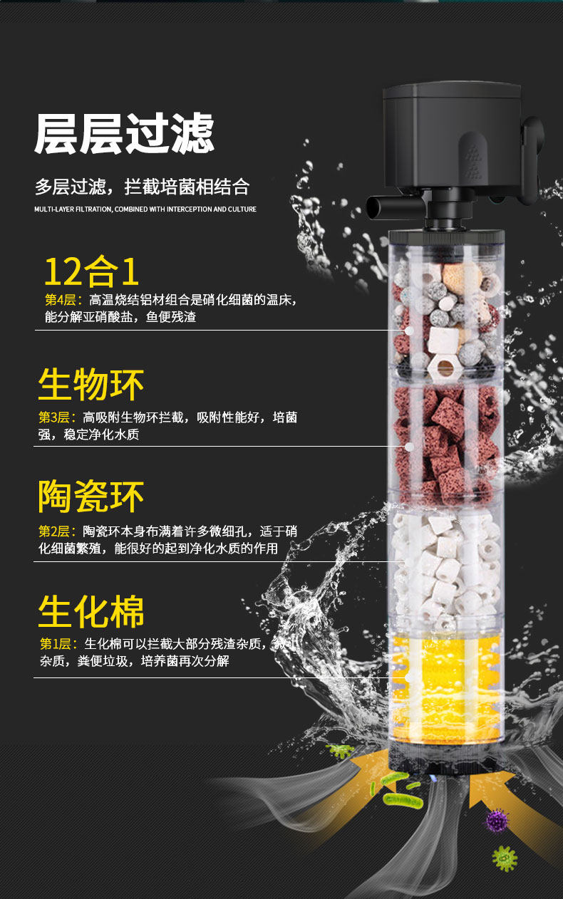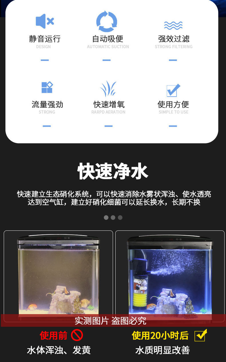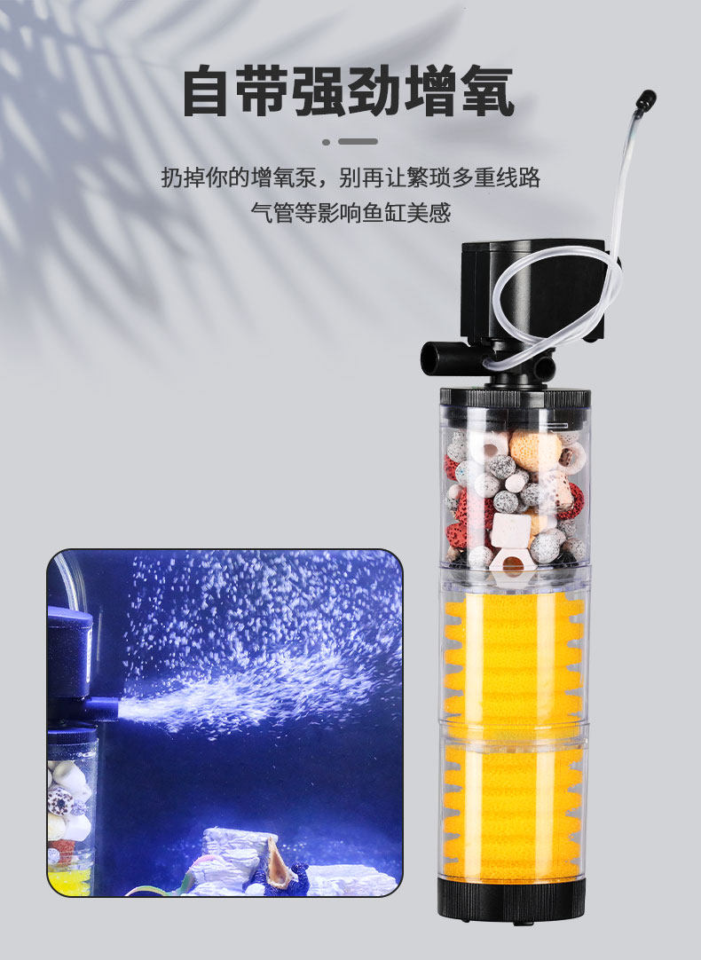 Фильтр аквариумов Трехноки на один насос для очистки воды Небольшой круглый рыбоводство, встроенное -в интегрированной системе обмена водой, без кислорода.