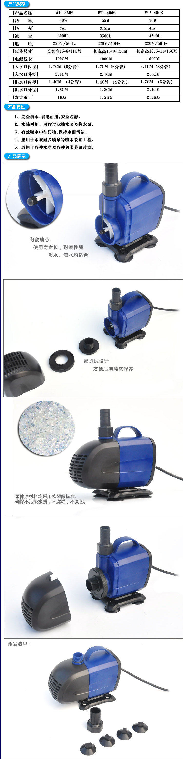 Songbao WP-350S400S Рыбной резервуар погрузка на насос фильтр для насоса водяной насос водяной насос тихий погружный насос аквариум