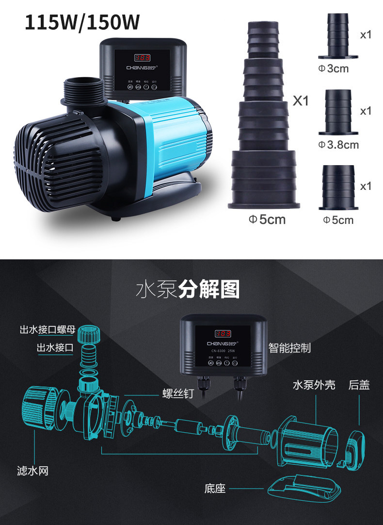 创宁 Частотный вариабельный водяной насос Ультра-тихий рыбный бак морской цилиндр водяной насос рыб пруд Погружный насос молча
