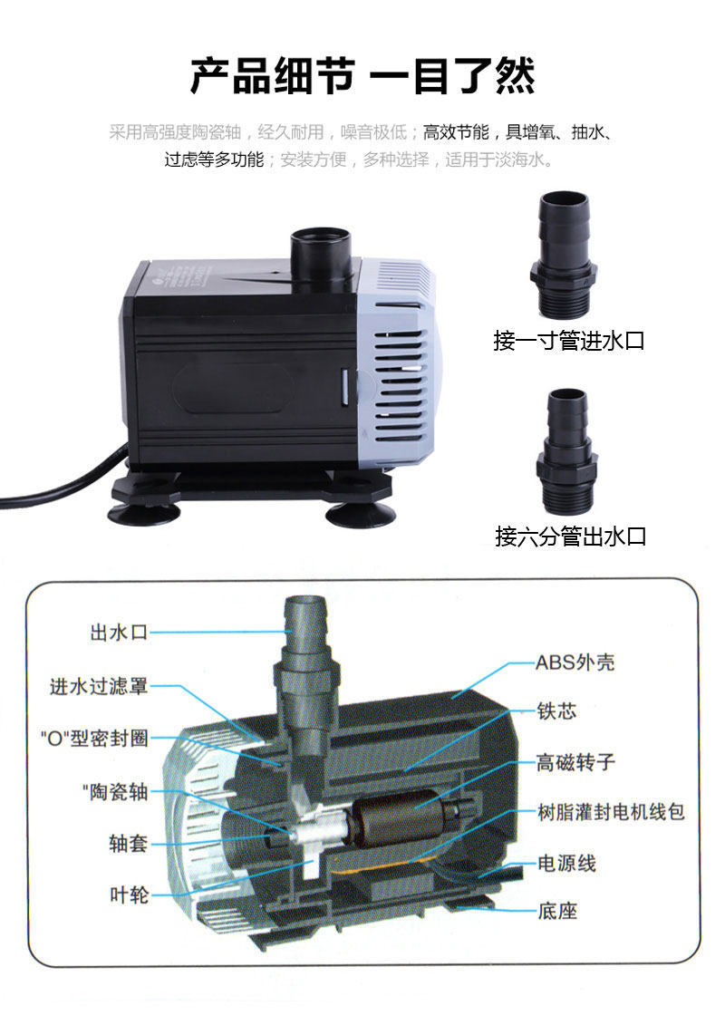 Рыба -аквариум вода насоса вода и сухопутный цилиндрийный насос Ультра -Quiet Маленький небольшой малый масштаб для замены воды насос с высоким содержанием рыбного насоса с высоким содержанием энергии насос