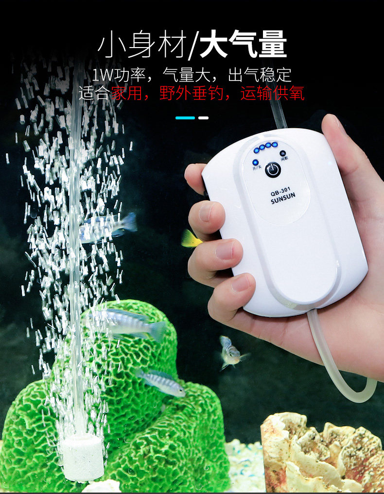 Sensen Small Fish Tank Homeving Зарядка кислородного насоса зарядка портативная ультра -мутоизорный гемотический рыбацкий насос.