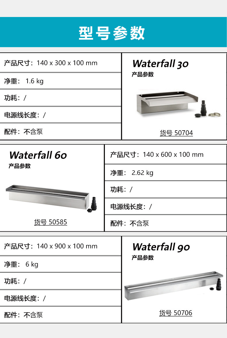 - Водопад водопада из нержавеющей стали 60 см (за исключением насоса, устья водопада Shan)